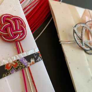 最後は、心付け用のポチ袋2点に端材で、ひと結びと八の字結びをあしらい、